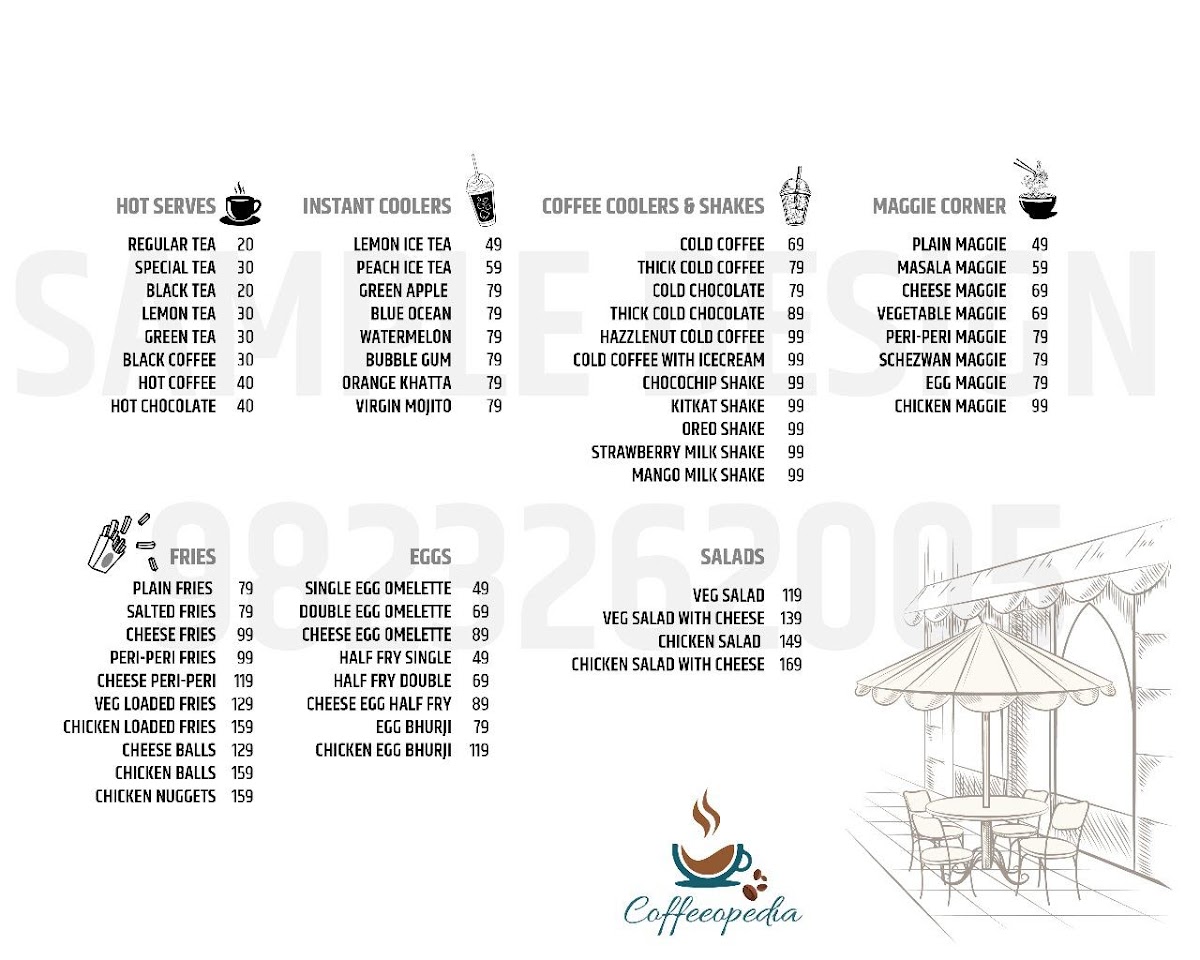 Coffeeopedia pool and Snooker Cafe Menu